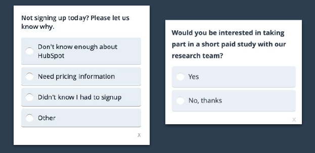 Um qualitative Daten nutzen können, schaltete HubSpot eine Kurzumfrage und fragte im Anschluss die Teilnahme an einer kurzen Studie an (gegen eine Bezahlung). Für die weiteren Tests wollte Anne keine schon bestehenden Nutzer von HubSpot ansprechen, weil diese als Poweruser sehr gut mit HubSpot umgehen können. „Wir wollten wirklich neue Nutzer finden, die eigentlich eine hohe Motivation hatten, sich zu registrieren, es aber nicht getan haben“, so Anne. Durch die Kurzumfrage konnten Hunderte von potenziellen Teilnehmer für die Studie gefunden werden.