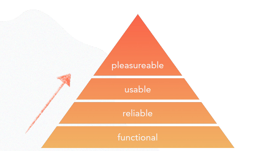 Klassische Usabilityoptimierung versucht ein funktionales, verlässliches und nutzbares Websiteerlebnis zu ermöglichen. „An diesem Punkt stoppt die klassische Herangehensweise in der Usabilityoptimierung“, beschreibt Anne und zitiert dabei Walter: „Das ist vergleichbar mit einem Besuch in einem Sterne-Restaurant, wo das Essen dann doch nur vorzeigbar war.“ Deshalb sei es wichtig, sich auch um die Spitze dieser Nutzerbedürfnisse-Pyramide Gedanken zu machen, nämlich ob ein UX-Erlebnis zusätzlich auch als „vergnüglich“ angesehen werden kann.