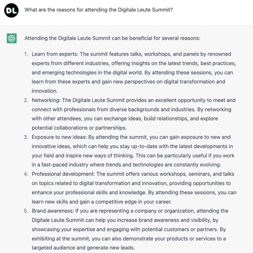 #DL Summit 2023: Hey ChatGPT, what are the reasons for attending the Digitale Leute Summit?