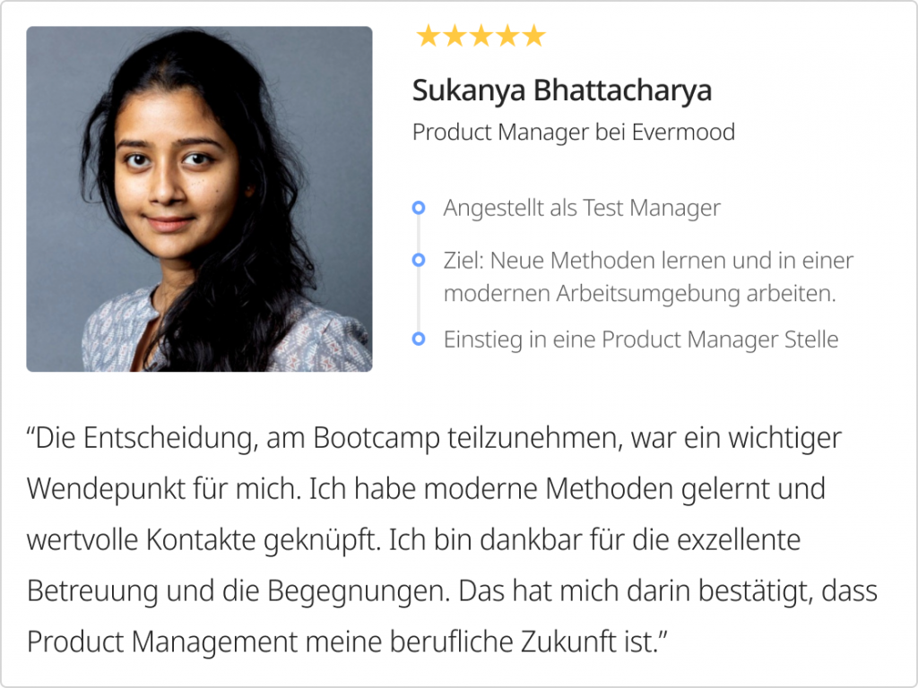 Unser Product Management Bootcamp hat sich als führendes Weiterbildungsprogramm etabliert und ist zur festen Institution geworden, die angehende Product Manager ausbildet und ihnen den Einstieg in die Tech-Branche erleichtert. Hier sind unsere Fakten und Highlights: