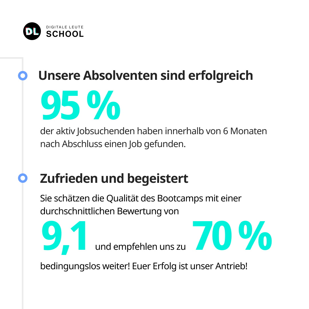 Das Bootcamp der Digitale Leute School zeichnet sich durch besondere Merkmale aus:
